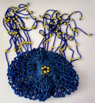 Vendo ricercato coprichignon artigianale acquistato in Turchia. Caratterizzato da una calotta a rete fitta e circa 20 nappine pendenti con perline dorate che creano un bellissimo punto luce. Si prega di considerare che si tratta di un lavoro manuale di precisione (tecnica Oya/Crochet), non paragonabile alle retine economiche da negozio. Un pezzo unico per chi cerca qualità e resistenza. Stato: nuovo. Prezzo commisurato alla fattura manuale dell'oggetto. #handicraft #perline #capelli #danza #etnico #bijoux #wallapop