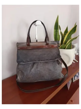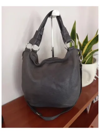 Borsa Artigianale Vera Pelle Grigia