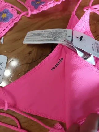Costume da bagno due pezzi Tezenis. - Top a triangolo con dettagli all'uncinetto. - Slip con laccetti laterali e dettagli all'uncinetto.