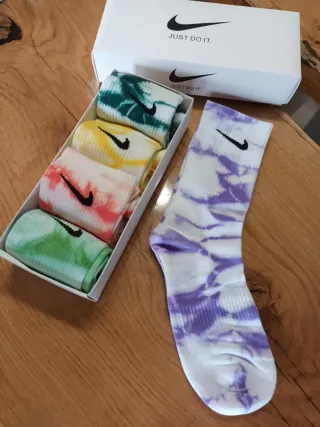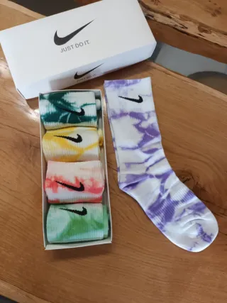Set di cinque paia di calzini Nike con design tie-dye. - Fantasie colorate assortite. - Logo Nike presente su ogni calzino. - Taglia 35-38.