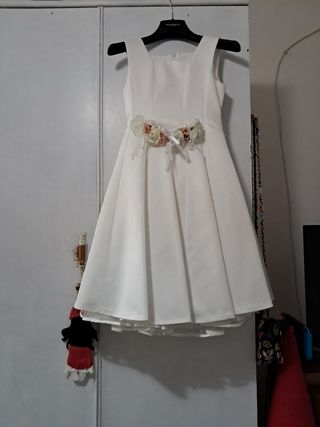 Vestito per bambina 10 anni.Da cerimonia con tulle interno e decorazione di fiori. Indossato solo una volta perfette condizioni praticamente nuovo