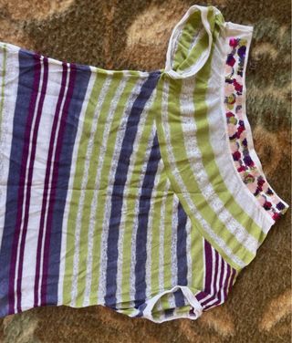 Bellissima maglia a righe, perfetta per la primavera! - Maglia a manica corta. - Modello asimmetrico. - Dettagli con paillettes su una spalla. - Ottime condizioni.Veste poco più piccola rispetto la misura riportata