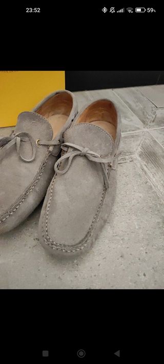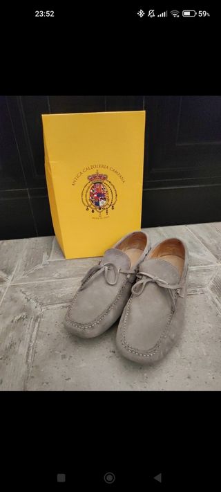 Mocassino uomo Antica Calzoleria Campana In pelle scamosciata grigio chiaro Fondo a gommini Fiocchetti in pelle Numero 43 Ottime condizioni Con scatola originale
