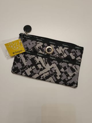 Pochette mini, portafoglio i beauty donna "Segue" vintage Particolare fantasia nero e grigio Mis 20 cm x 12 cm Tasca interna con bottone ed interna con cerniera Mai utilizzata con etichetta 🏷