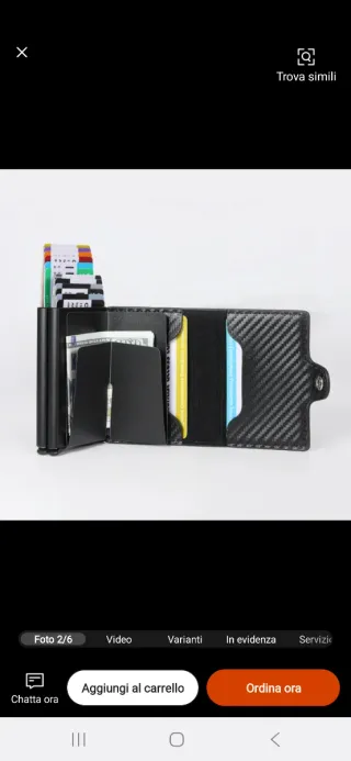 Nero in pelle, bifold, come nuovo con scatola originale e una dozzina di tasche per dimensioni da carta di credito. Perfetto per regalo, vendo a metà prezzo.