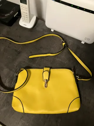 Borsa da donna dal design moderno e funzionale. - Colore giallo vivace - Dettagli con cuciture a contrasto - Chiusura con fibbia e zip interna - Tracolla regolabile