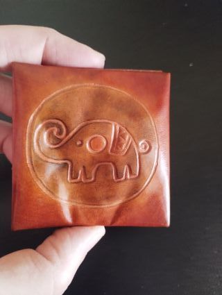 Portamonete Artigianale in Cuoio – Commercio Equo e Solidale Dimensione chiuso 6,5 x 6,5 cm perfetto anche per le borse più piccole o da tenere in tasca. Splendido portamonete compatto realizzato a mano Made In India.Non è solo un accessorio, ma un pezzo di artigianato che sostiene il lavoro dignitoso! Presenta un bellissimo elefante stilizzato impresso a rilievo sul fronte, simbolo di saggezza e fortuna. Materiale Pregiato: Realizzato in vero cuoio di un caldo color terra bruciata con finitura naturale. Pratico e Sicuro: Chiusura con bottone a pressione metallico e apertura a "soffietto" #PortamoneteCuoio #ArtigianatoEtico