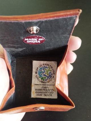 Il portafoglio ha una leggera scucitura all'interno, come si può vedere dalle foto. Molto sottile per essere utilizzato nelle tasche dei pantaloni e maneggevole E' stato realizzato da un artigiano ed è costato 45 euro