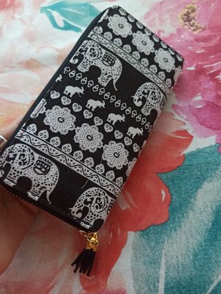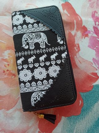 Portafoglio nero con disegni bianchi, mai utilizzato.