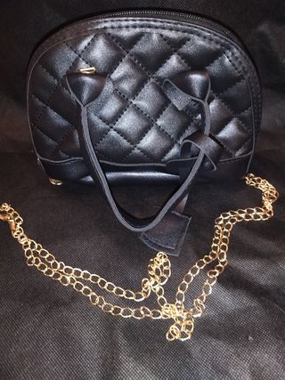 Borsetta semplice con patta e tracolla oro. Utilizzata una sola volta . Non ha alcun difetto