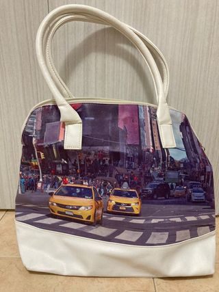 -vendo borsa bianca con fantasia città/taxi. ciò due tasche senza chiusura e una tasca con la chiusura (come da foto) -usata solo poche volte -prezzo trattabile
