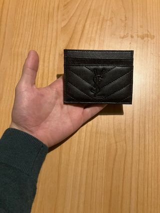 Porta carte di lusso, mai utilizzato. - Design trapuntato con motivo chevron. - Logo YSL nero a rilievo.