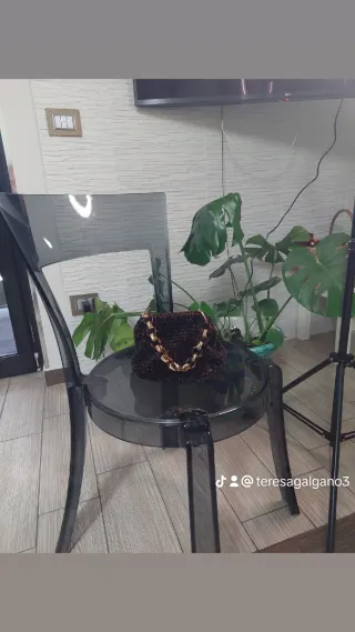 Elegante borsa a mano in ciniglia color marrone, perfetta per completare il tuo look. - Materiale: ciniglia morbida al tatto. - Dettaglio: catena decorativa color oro e - Chiusura: a calamita.