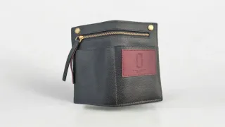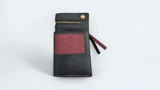 Elegante portafoglio firmato Marc Jacobs, realizzato in pelle nera martellata con dettagli in bordeaux e finiture dorate. Dotato di una comoda zip dorata, due bottoni automatici e un inserto in pelle color bordeaux con il logo "J" caratteristico del brand. 🔸 Colore: Nero con dettagli bordeaux 🔸 Materiale: Pelle 🔸 Condizioni: [Inserisci qui “Nuovo” o “Usato in ottime condizioni”, ecc.] 🔸 Chiusura: Zip dorata + bottoni automatici 🔸 Dettagli: Logo Marc Jacobs impresso, tasche multiple 🔸 Originale: Sì, autentico