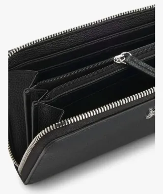 Portafoglio da donna HUGO by Hugo Boss, modello Around Wallet. - Materiale esterno in pelle martellata. - Logo HUGO metallico applicato sul fronte. - Chiusura con zip. - Finiture argentate.