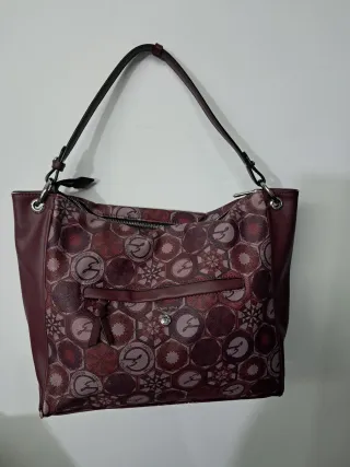 Borsa a spalla Gattinoni con un design unico. - Fantasia geometrica con logo. - Dettagli in pelle. - Tasca esterna con zip.