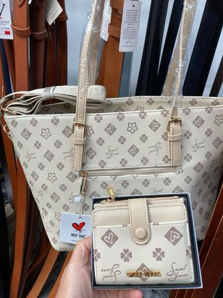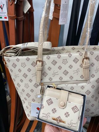 Set coordinato borsa e portafoglio con fantasia. - Borsa capiente con tracolla. - Portafoglio compatto con chiusura a bottone e zip. il set è nuovo ed arriverà ancora sigillato. vari colori disponibili