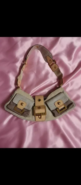 Borsa a spalla in stile 2000style y2k, un accessorio iconico per completare il tuo look. - Design con tasche frontali e dettagli metallici. - Materiale in tela e inserti effetto coccodrillo. Chiusura con cerniera Cerniere tutte funzionanti Misura 33x12cm Profondità 8cm Lunghezza totale 40cm Piccoli segni di usura nelle ultime foto