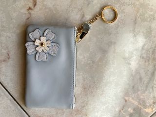 Elegante portacarte con un grazioso fiore applicato. - Dettaglio floreale in rilievo. - Accessorio con portachiavi dorato.