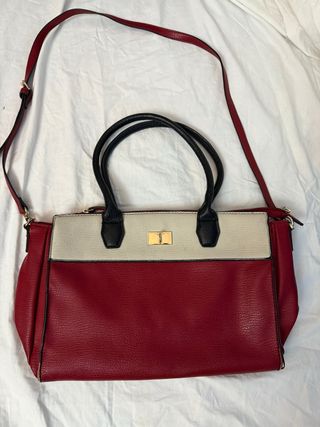 Elegante borsa a mano con tracolla, perfetta per ogni occasione. Il design bicolore la rende un accessorio versatile. - Manici neri. - Dettaglio metallico dorato sul davanti. - Tracolla regolabile inclusa.