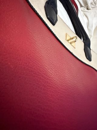 con manici e tracolla usata pochissimo in plastica lavabile rossa a pois bianchi divisa in 3 scomparti