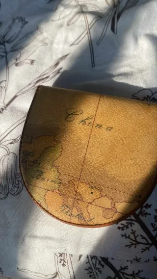 Elegante porta monete con una stampa di una mappa antica. - Design curvo e compatto. - Dettagli della mappa dell'Asia, inclusa la Cina. - Finitura testurizzata.