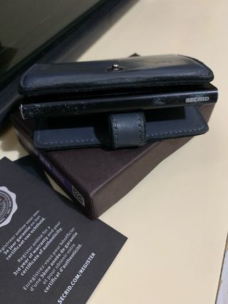 Portafoglio Secrid in pelle grigia. Include certificato di garanzia e autenticità. - Design compatto ed elegante. - Chiusura a bottone. Tutto come da foto visto è piaciuto