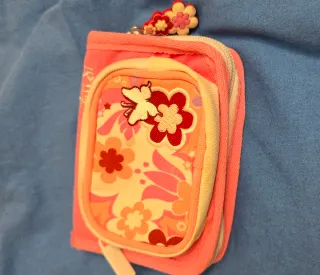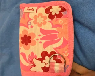Portafoglio Trudi con una graziosa farfalla ricamata e dettagli floreali. - Fantasia floreale colorata. - Chiusura con cerniera. - Piccolo taschino frontale con zip. Misure chiuso 14x10 cm, aperto 14x20 cm. Con porta monete, porta schede e porta fogli. Come nuovo. (Studio)