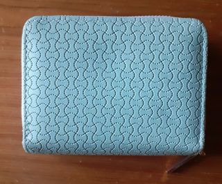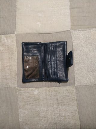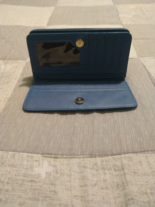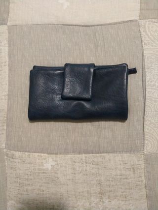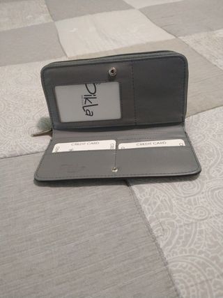 Portafoglio similpelle con chiusura zip e varie tasche, nuovo.