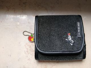 Elegante portamonete - Colore nero con dettagli oro. - Design compatto e raffinato.