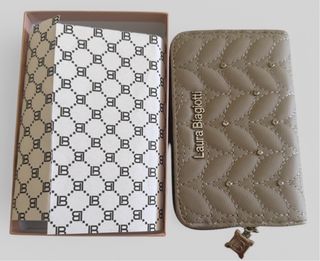 Vendo portafoglio Laura Biagiotti modello Bennie colore cemento una zip per soldi spiccioli e scomparto con bottone per carte e banconote