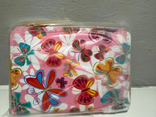 Portamonete con una vivace fantasia di farfalle e fiori. - Design colorato e allegro. - Chiusura a zip per una maggiore sicurezza.