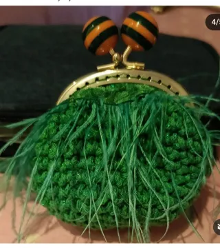 Nuovo Porta Monete Artigianale - SIMONAMI CROCHET Elegante porta monete in cordino all'uncinetto, realizzato a mano, con vivace colore verde, piume decorative e chiusura a sfere colorate. Un tocco di originalità e stile artigianale per il tuo outfit! Su richiesta realizziamo anche borse, portafogli e accessori coordinati. Scopri le nostre creazioni su Facebook e Instagram: SIMONAMI CROCHET. Contattaci per ordini o creazioni personalizzate: daremo vita ai tuoi desideri! Il prezzo indicato si riferisce al singolo articolo.