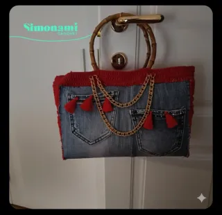 SIMONAMI CROCHET – Borsa Artigianale Unica, Stile Inconfondibile! ✨Fatta a mano con amore✨ Lasciati conquistare dal fascino di una creazione unica: una borsa artigianale che unisce l’eleganza del crochet rosso, il romanticismo dei dettagli floreali e l’anima grintosa del jeans riciclato. Con manici in bambù naturale, tasche frontali decorate con catena dorata e nappine, è l’accessorio perfetto per chi ama distinguersi. Capiente, originale, irresistibile. 100% handmade – 100% amore – 100% tu! Scrivimi per info o personalizzazioni. Pezzo unico, non lasciartelo sfuggire!