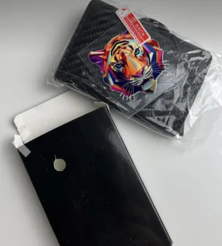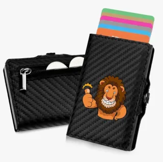 Portafoglio con un design unico e colorato. - Stampa di una tigre stilizzata. - Materiale effetto carbonio.