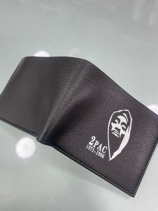 Portafoglio nero con iconica stampa di 2Pac. - Design bi-fold. - Stampa grafica di 2Pac con date 1971-1996.