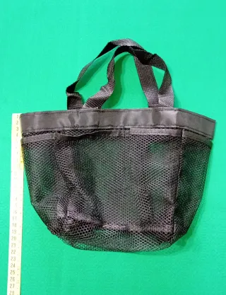 Pratica borsa da bagno in rete, perfetta per organizzare i tuoi articoli da toeletta. - Materiale in rete traspirante. - Tasche esterne per un facile accesso. - Manici resistenti per il trasporto.