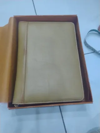 Elegante portadocumenti in pelle, perfetto per organizzare i tuoi fogli. - Materiale: Pelle - Colore: Beige più precisamente cuoio. Completo di scomparto documenti più scomparto per carte e monete. si chiude con zip misura 28 cm x 21 cm