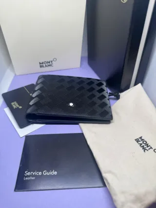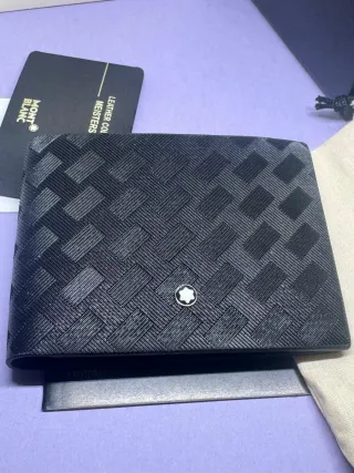 Portafoglio Montblanc in pelle, mai indossato e completo di confezione originale. - Design intrecciato. - Logo Montblanc in rilievo.