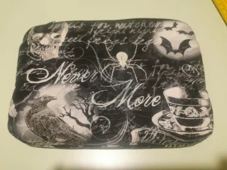 Pochette/astuccio con design a tema gotico - Fantasia con teschio, corvo, ragno e luna. - Due tasche con zip