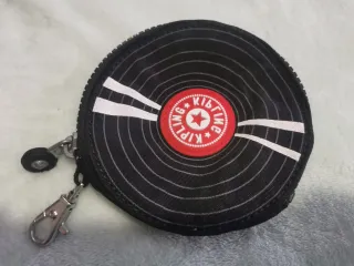 Portamonete rotondo con design ispirato ai dischi in vinile. - Chiusura a zip. - Dettagli a contrasto sul davanti. - Moschettone e anello per aggancio.