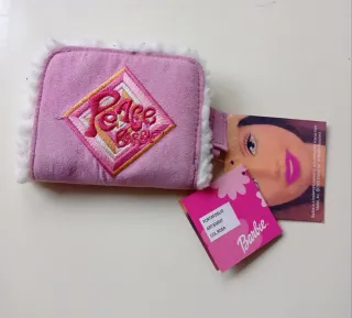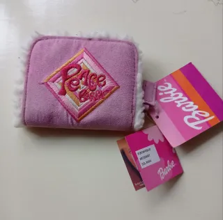 Portafoglio rosa con dettagli ricamati. Presenta delle leggere macchioline come mostrato in foto - Design con pelliccia sintetica bianca. - Ricamo Peace Barbie su rombo. - Chiusura con linguetta. - Etichette originali incluse.