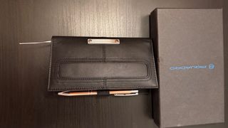 Elegante porta agenda Piquadro. - Realizzato in pelle. - Colore nero. la penna e l’agenda nella foto non sono compresi