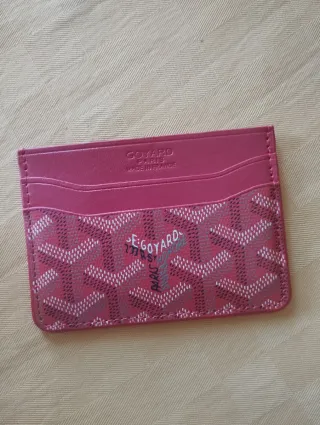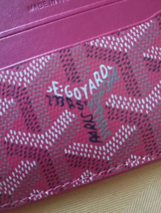 Elegante porta carte Goyard in pelle, con il classico motivo a chevron. - Colore: multicolor, bordeaux - Made in France.