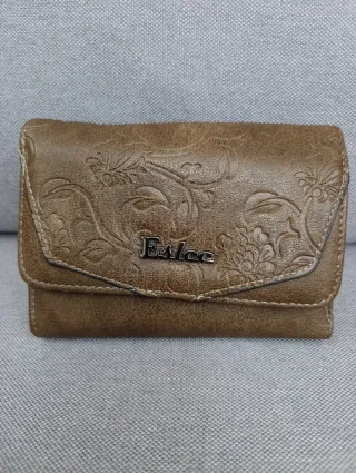 Elegante portafoglio da donna con un design floreale in rilievo.Portamonete con zip,multitasche porta documenti. - Mis 15x10 - Motivo floreale inciso. - Dettaglio logo Eslee.
