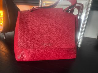 Splendida borsa Orciani in pelle granata. - Materiale: pelle martellata. - Colore: rosso vivace. - Design elegante e strutturato. La borsa è nuova, indossata solo in una occasione per poche ore. Il prezzo è basso perchè presenta una macchietta di biro sulla tasca interna (che peró rimane non visibile anche se la borsa si apre).