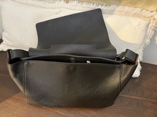 Di ottima qualita in pelle morbida. Due tasche a sinistra, una tasca a destra, tutte senza alcuna scucitura. Solo un piccolo foro nella piega causato dall'uso come evidenziato nella foto