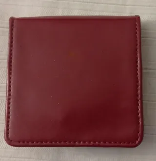 Portamonete in similpelle, pratico e compatto in similpelle marrone con chiusura a scatto tramite clip in metallo,le dimensioni sono: 8 cm. (Circa) * 8 cm. (Circa) * 4 cm. (Di profondità quando è aperto). Il borsellino è stato usato per un breve periodo ma risulta ancora in buone condizioni.
