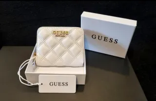 Elegante mini portafoglio Guess, perfetto per portare con te l'essenziale. - Design trapuntato. - Logo Guess dorato. - Chiusura con zip.
