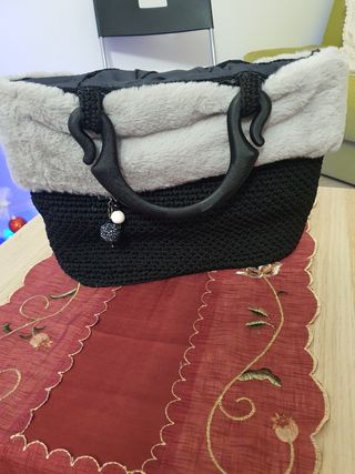 bellissima borsa fatta a mano con pellicciotto manici simil ferro di cavallo e ciondolo incluso